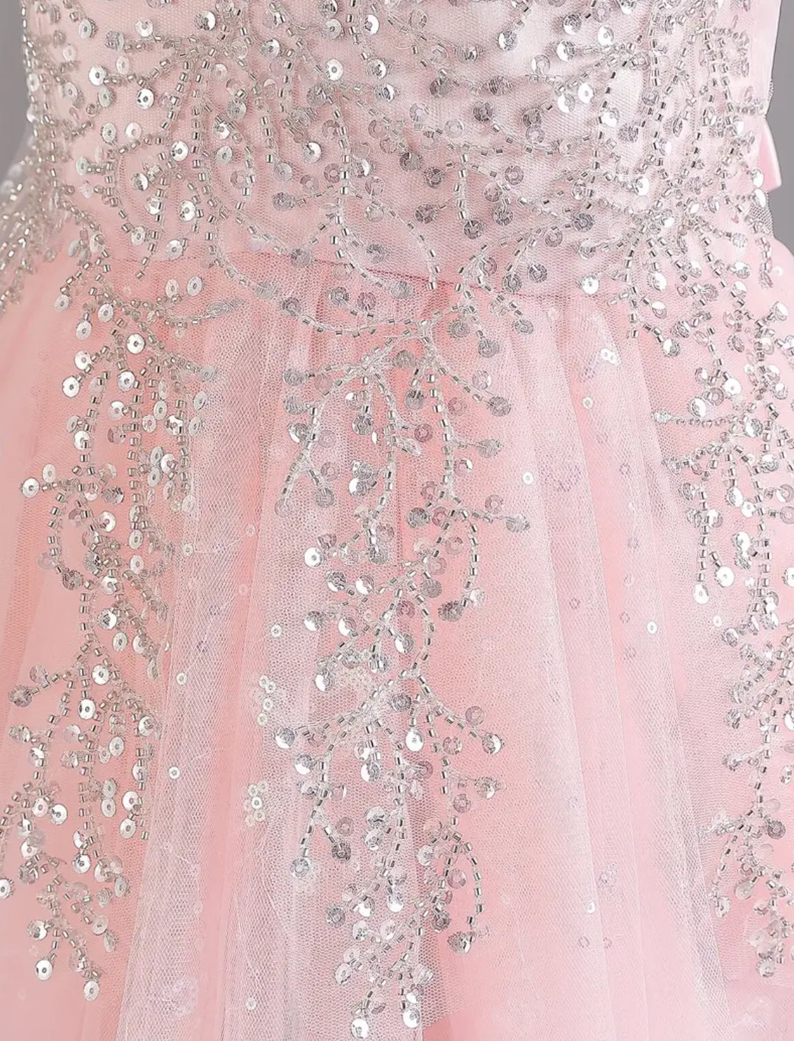 The stylish and elegant design, featuring intricate sequin detailing and a flowing tutu skirt, will make her feel like a princess.