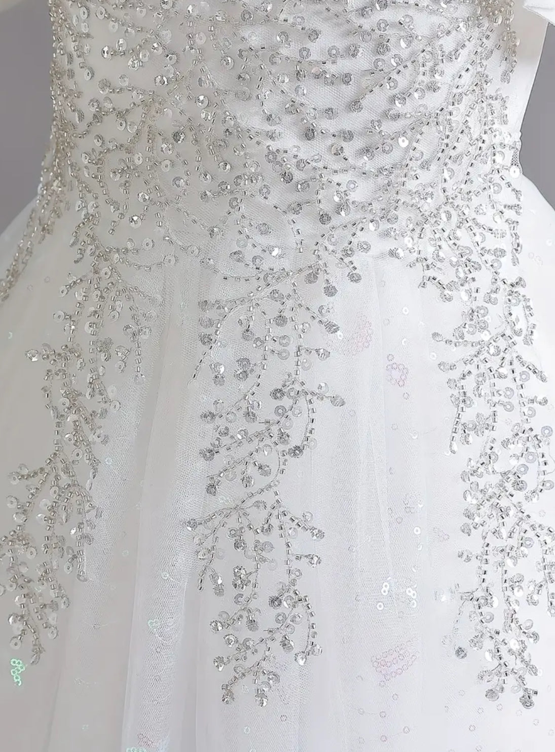 “Kirsten” Elegant Off Shoulder, Sequin Mesh Tutu Dress