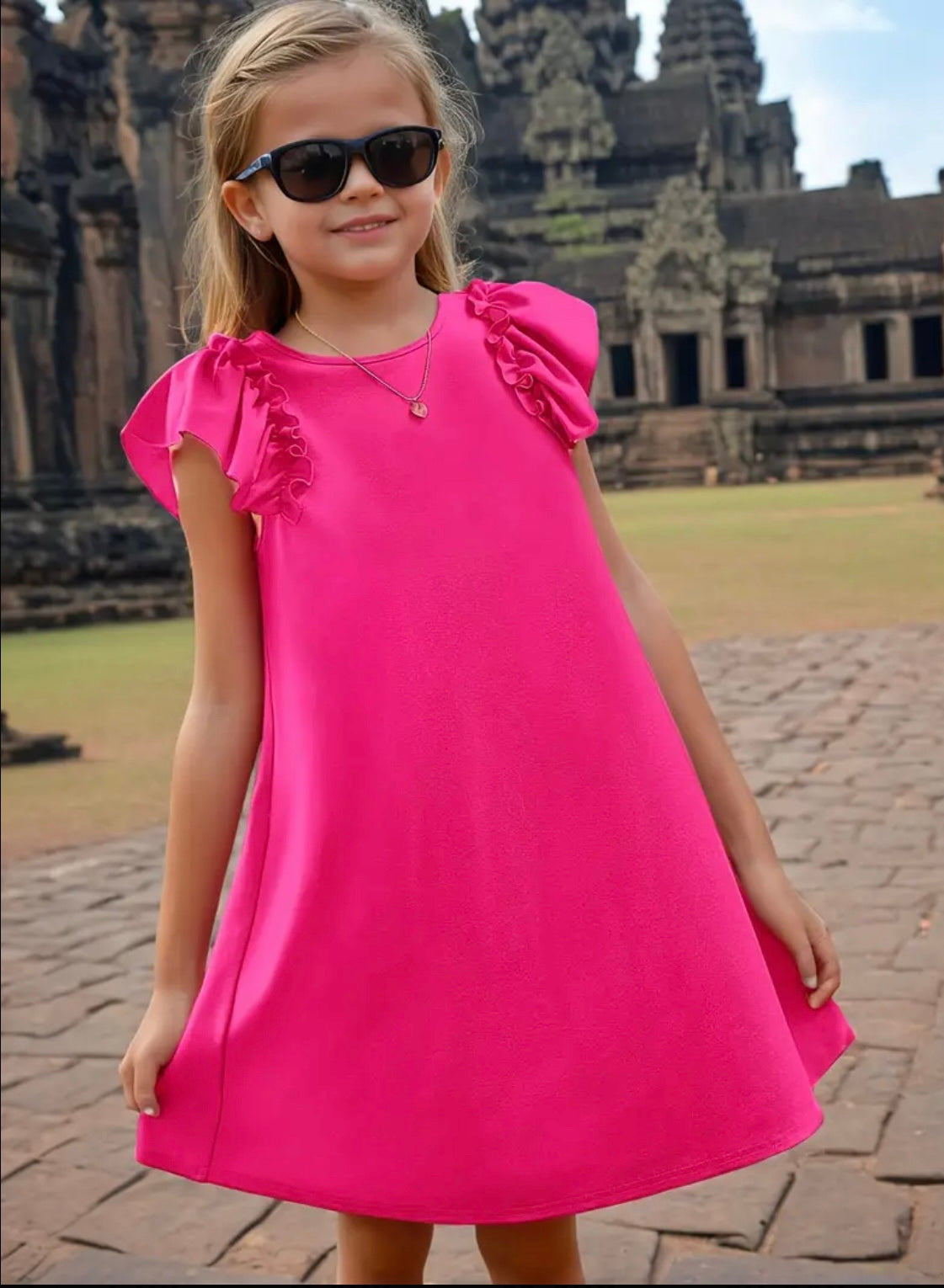Upgrade your little one's wardrobe with our elegant Girl's Flounce Sleeve Dress.