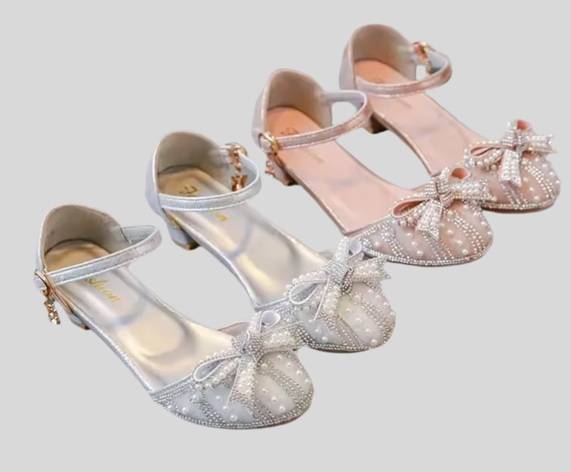 Girls Glitter Low Chunky Heel Sandals