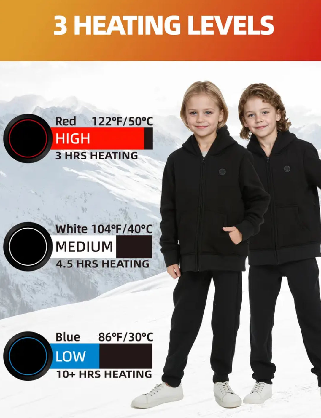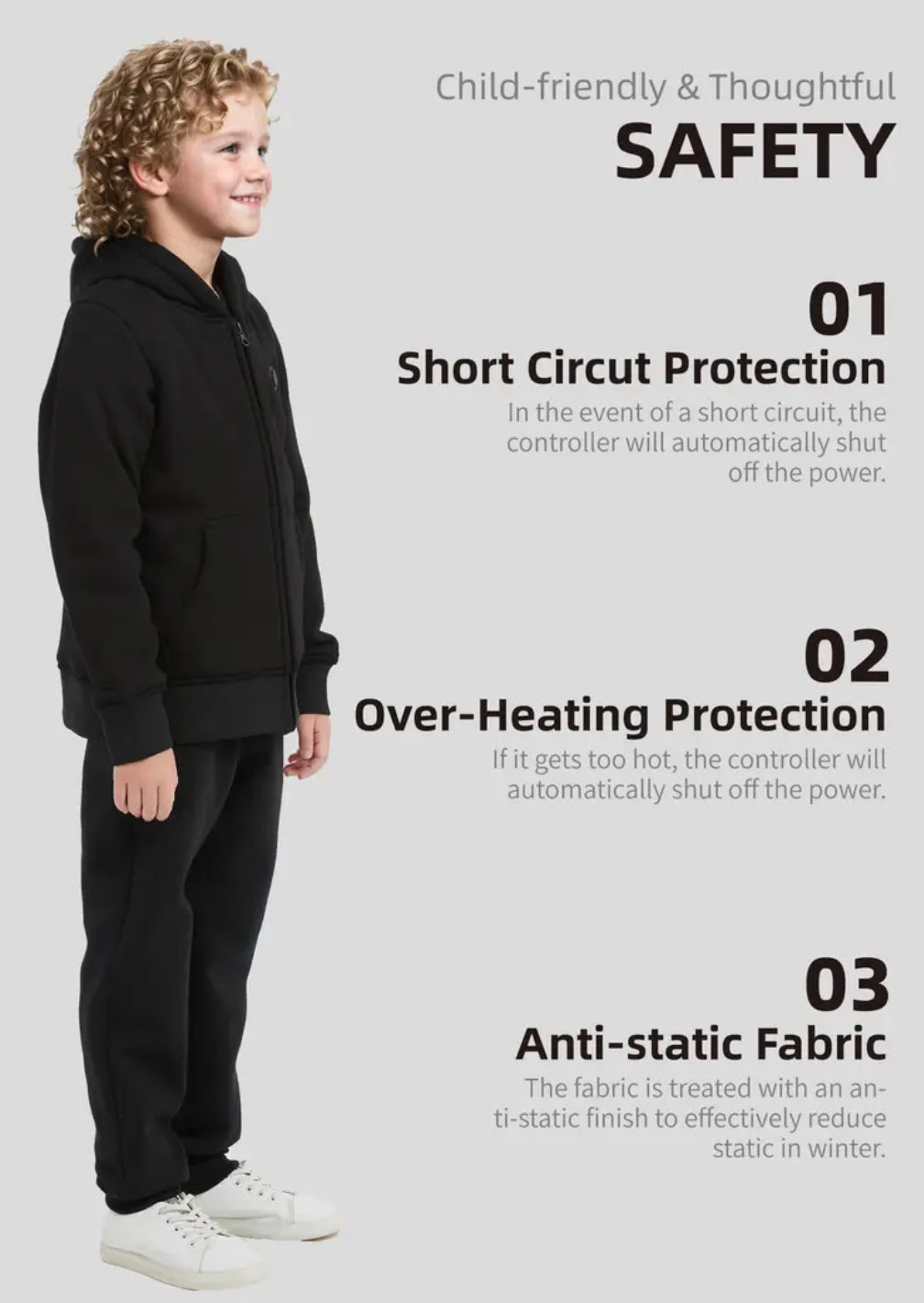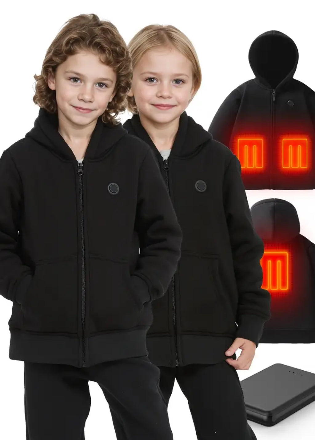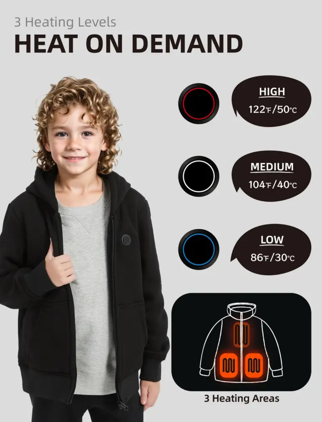 Kids Heated Hoodie Jacket, Full-Zip With 5V Battery Pack