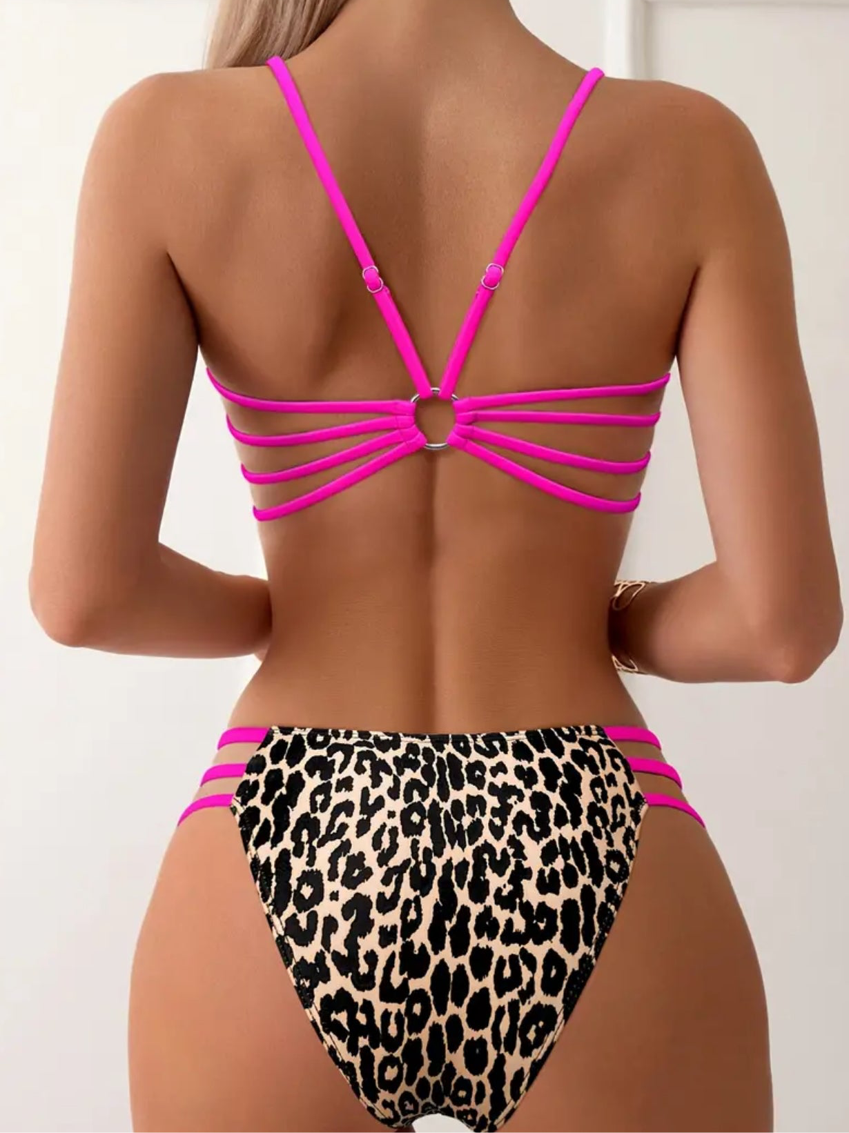 “Neon Leopard” Two-Piece, Bikini Set - Strappy Backless