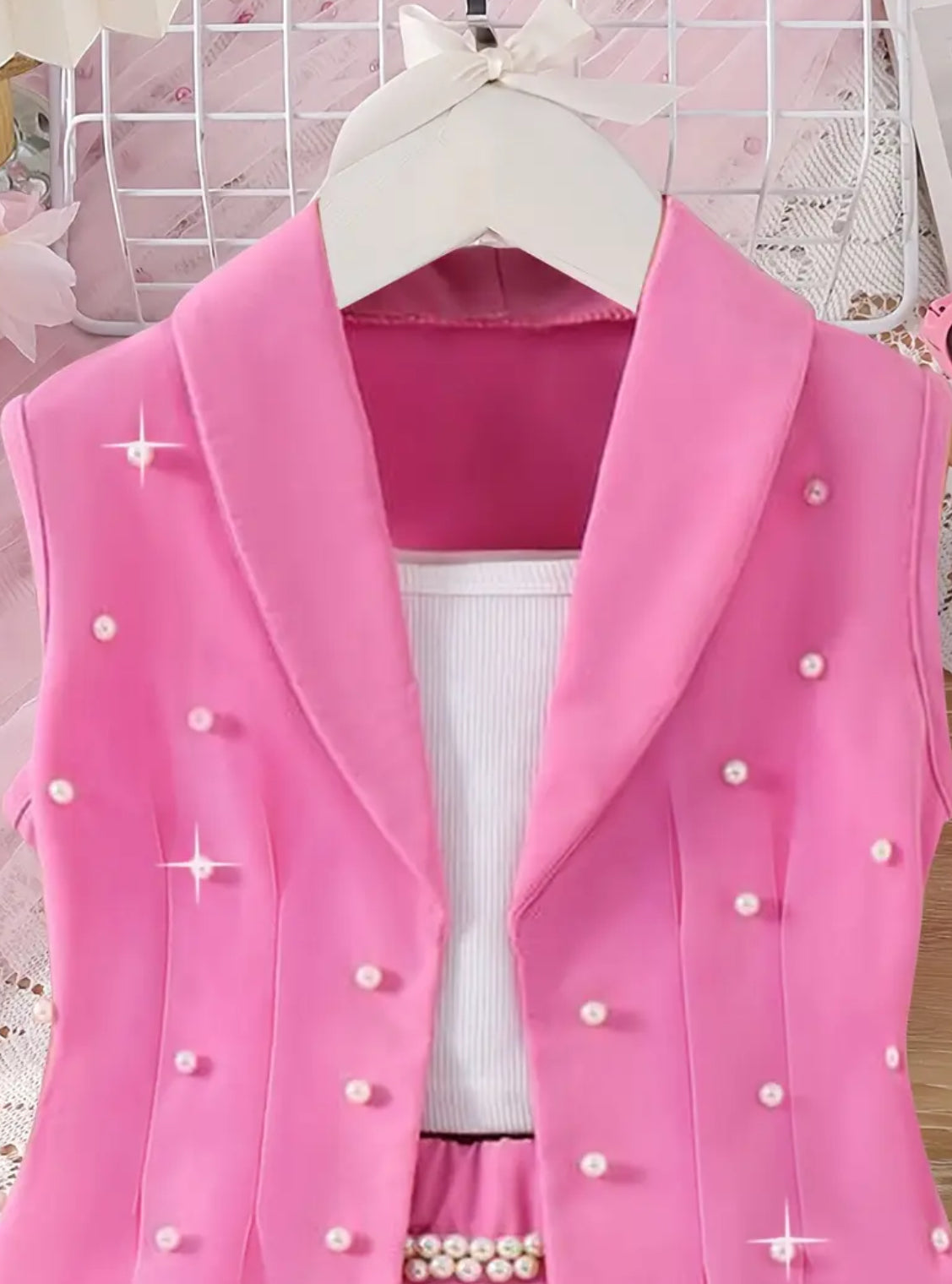 Girls ‘MISS HOLLYWOOD’ 3pcs Set - Shorts, White Blouse + Sleeveless Suit Vest