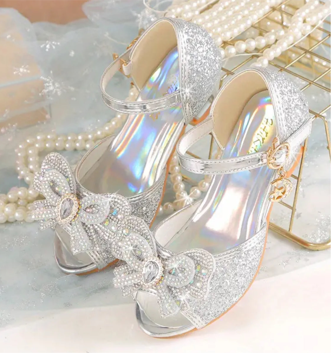 “Trendy Bows” Shiny Rhinestone Sequin, High Heel Shoes For Girls
