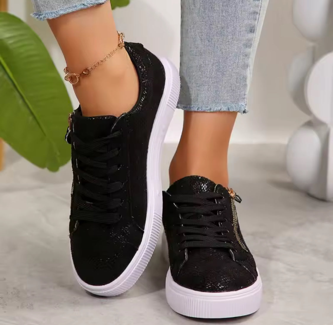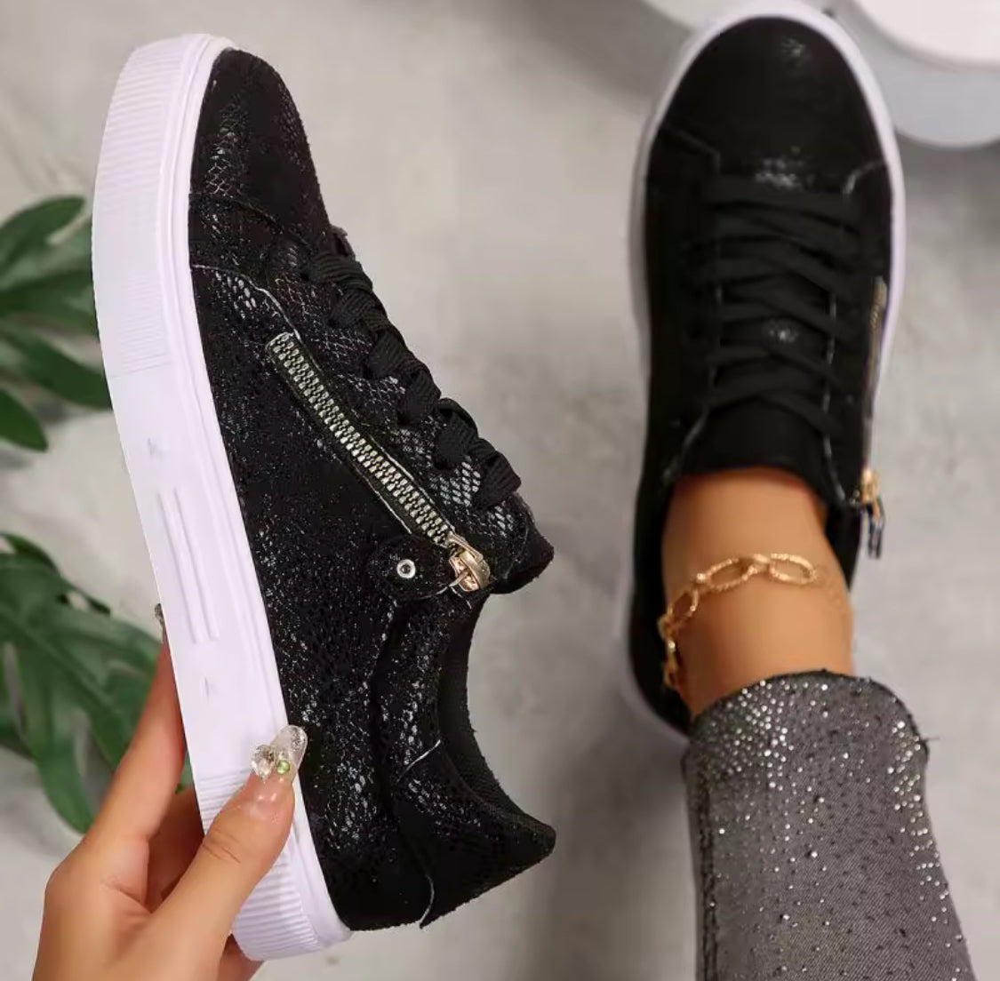 ‘Sporty Vibes’ Women’s Low Top Side Zipper Accent