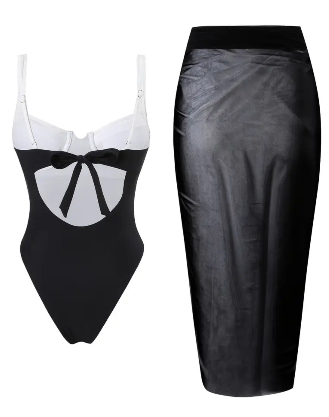 Women's ‘Onyx’ Tankini Swimsuit Sets | One-piece + Skirt Cover Up