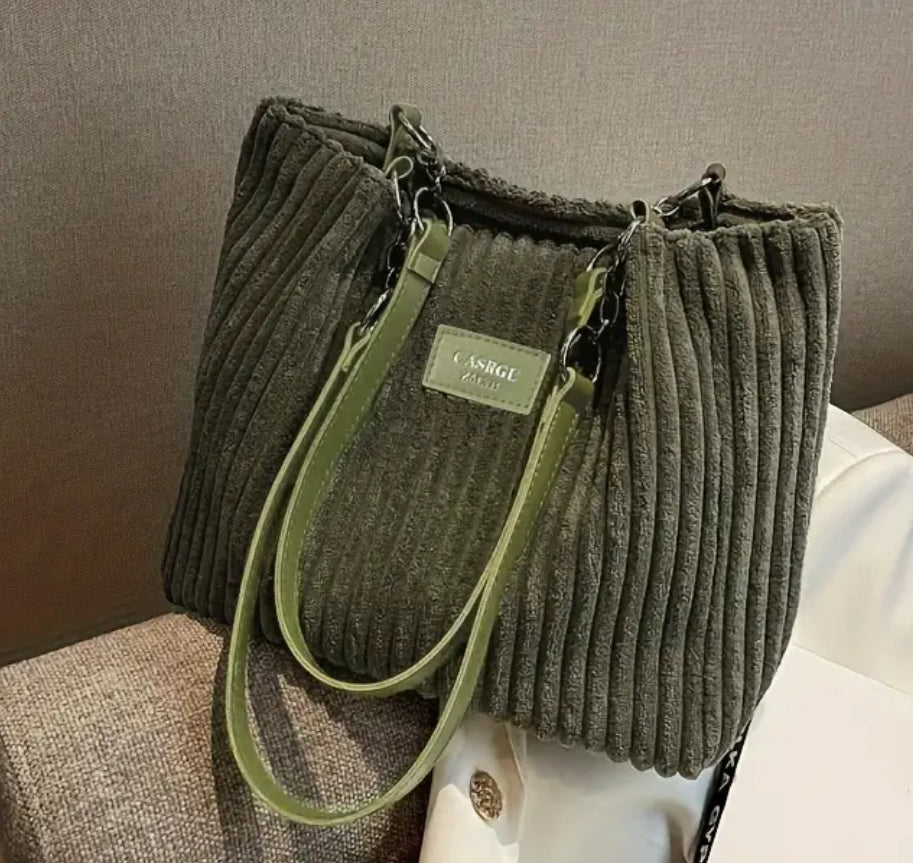 Soft Feel, Crossbody Carry, Zipper Closure, Corduroy Material, Large Capacity