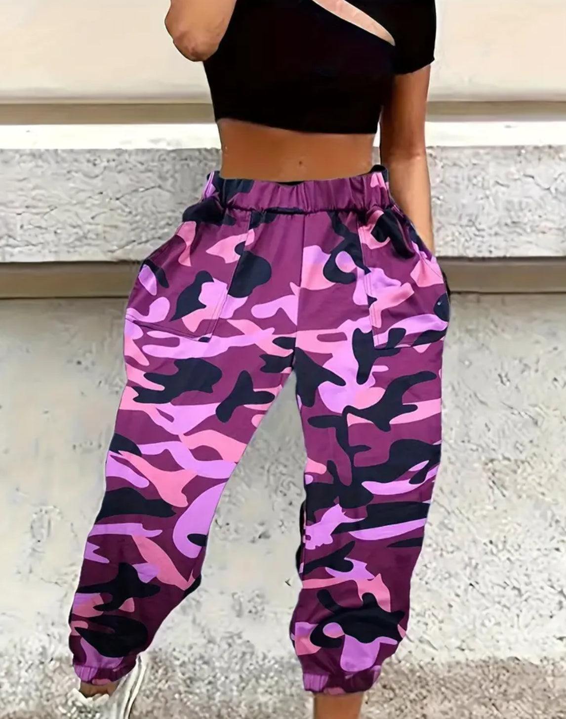 Stay on trend with these Women's High Waist Camo Jogger Pants.
