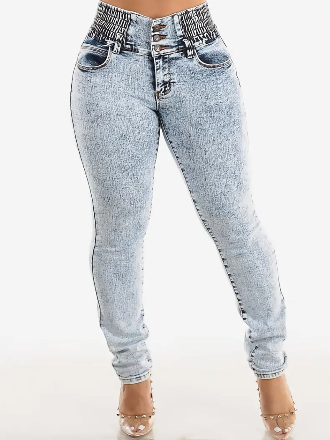 “Jamestown” High Waist Skinny Jeans, High Stretch Street Style