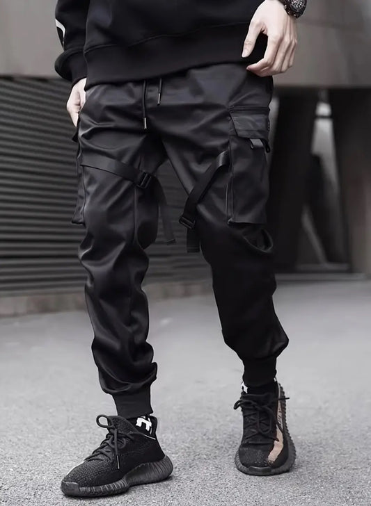 Përshtatje e rregullt për meshkuj, Stretch lehtë, Hip Hop Solid Black Cargo Joggers