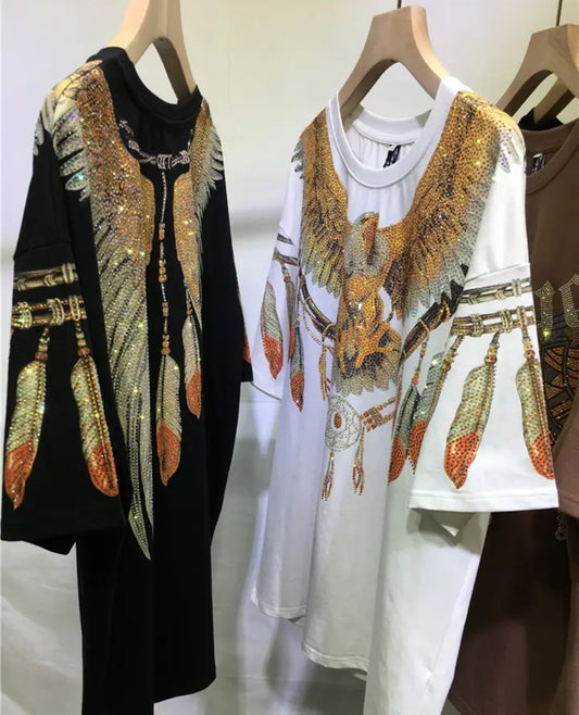 Bluzë L-4XL, Eagle Rhinestones për femra-Meshkuj me mëngë të shkurtra