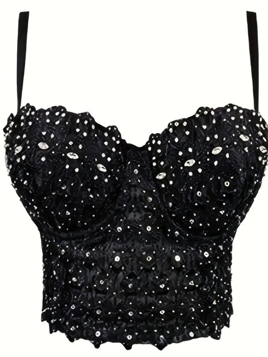 Crystal Embellished 1 Piece Bustier Semi Transparent Floral Lace