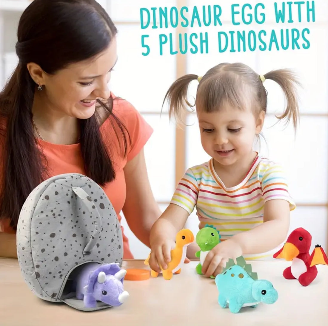 5 Plush Baby Dinosaurs 🦕 with Egg Carrying Bag