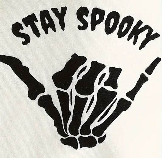 🎃 "Stay Spooky" Print Sweatshirt & Casual Checkerboard Pattern Pants