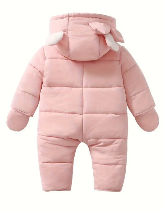 💕 Baby Girls Fleece Warm Hooded Bodysuit + Detachable Gloves