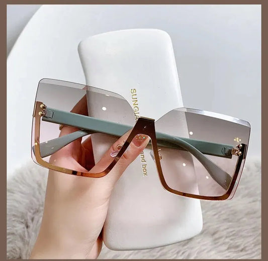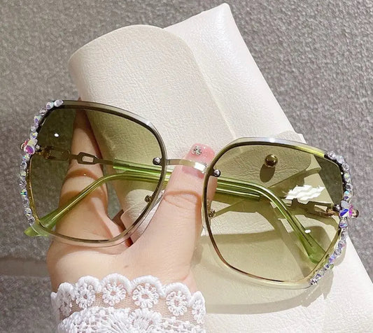“Rhinestone Sunnies” Rimless Fashion Sunglasses, Casual Gradient UV400