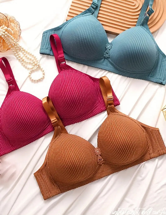‘Classy’ Striped Push Up Bra Rhinestone Embellish
