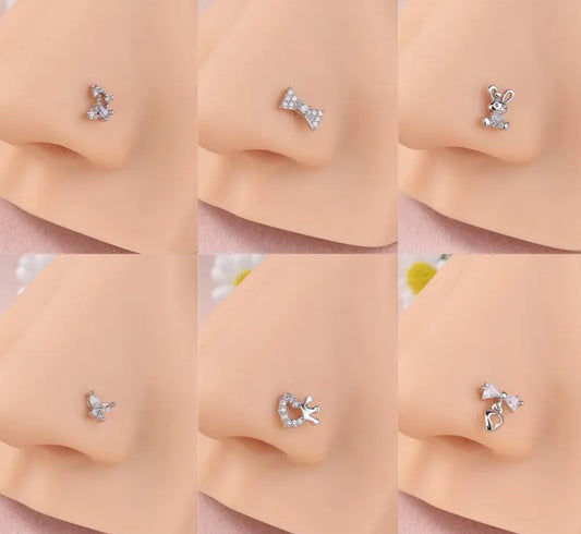 ‘Bows & Crown’ 6 pcs 18K Gold Plated Copper Nose Rings