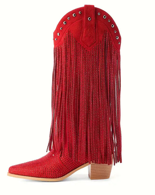 ‘Studded’ Fringe Woman’s Rhinestone ▪️ Red Western Boots