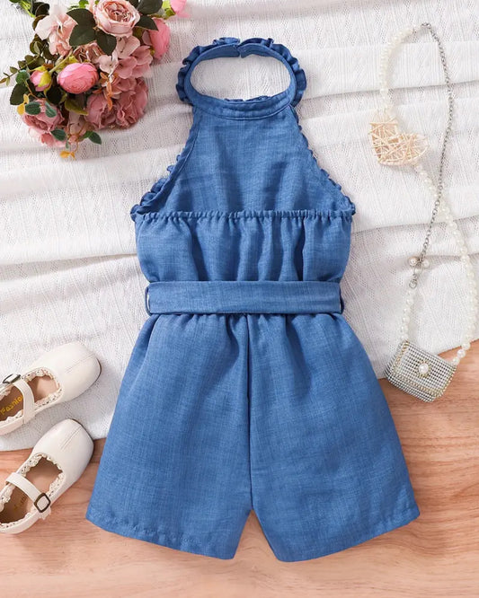 Girls “Sky” Jumpsuit, Strapless Woven Fabric, Slingback Top