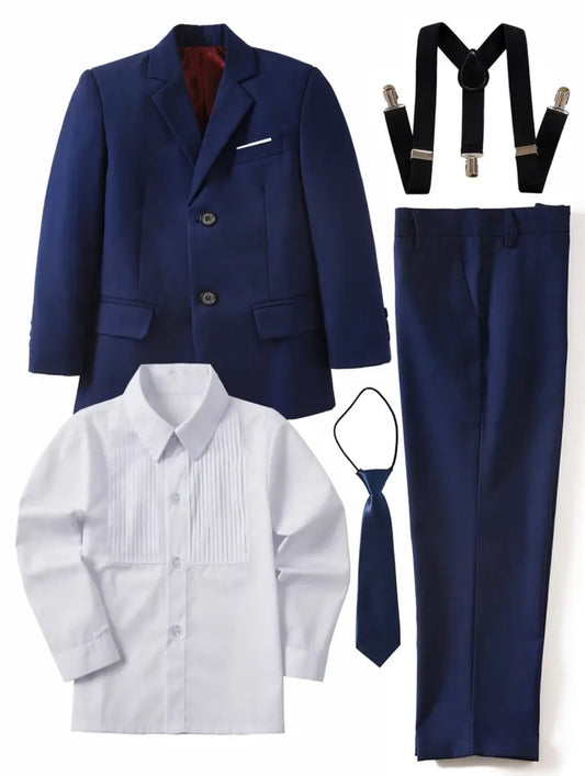 5pcs Boys | Long Sleeve Blazer Tie Shirt Pants + Vest