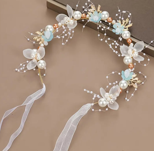 1PC Romantic Floral, Headband With Faux Pearls & Beads